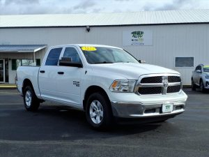 The Crew Cab configuration offers a large, comfortable cabin with plenty of room for passengers and useful in-floor storage bins. The short bed provides a good balance between cargo space and maneuverability. Also this Ram 1500 Classic’s coil-spring rear suspension is a standout feature, providing a smoother and more car-like ride quality compared to many competitors’ leaf-spring setups. If you need a truck with the perfect balance of capability, comfort, and value look no further.